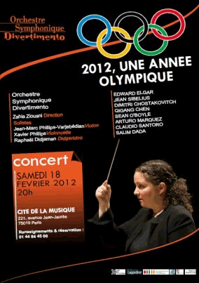 Il s’agit de ma nouvelle composition symphonique, en trois mouvements, élaborée et écrite entre octobre 2011 et février 2012 sur une commande de l’Orchestre Symphonique Divertimento. Dans ces concerts vous pouvez également découvrir une programmation originale fidèle aux orientations artistiques du Divertimento et de son chef d’orchestre Zahia Ziouani, autour d’un concert mettant à l’honneur les jeux olympiques qui seront célébrés à Londres en 2012. A cette occasion, l’Orchestre Divertimento, présentera un programme original d’œuvres du XXe et XXIe siècle de différents compositeurs appartenant aux cinq continents, valorisant ainsi une ouverture sur de nouvelles esthétiques musicales et une découverte de nouveaux répertoires.