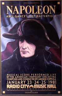 Trois versions différentes, trois compositeurs : Arthur Honegger, Carl Davis, Carmine Coppola – cinquante-trois années séparant la première projection de celle qui fit connaître enfin « Napoléon » au grand public : le destin de ce film ne dément pas sa démesure. À l’origine, Abel Gance désirait dédier à ce personnage une fresque en six parties. La première suffit à épuiser le budget, pourtant considérable, dont il disposait. Parallèlement, ses relations avec Honegger s’étaient aussi dégradées, le musicien ne supportant plus les atermoiements du réalisateur, lequel ne cessait de découper et de remonter son film, condamnant d’avance toute version définitive de la musique. L’absence d’Honegger à la première confirma le caractère provisoire de l’œuvre, et sa partition, exécutée par un tiers, fut mal reçue par le public. Dans les années 70, le film fut entièrement remonté tel que, dit-on, l’aurait voulu Abel Gance, cette fois accompagné d’une musique originale de Carl Davis, spécialiste en reconstitution de musique d’époque. De l’avis des spécialistes, il s’agit du meilleur accompagnement, restituant à la fois l’ambiance musicale du XIXe siècle et l’intensité du scénario. À cette occasion, Francis Ford Coppola, subjugué, décida de le distribuer aux États-Unis, mais il chargea néanmoins son père, Carmine, de réécrire une troisième version de la musique. (Catherine De Poortere)