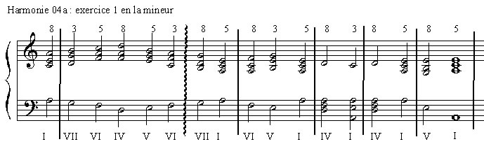 Ce sont des exercices semblables à ceux du cours VI en majeur. ces exercices sont réalisables sans fausse cadence ni tierce montante.