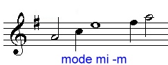 Enfin, aux 2 extrémités, on ajoute la dernière note pivot en B qui est la note la ici. Cette note est la limite supérieure et inférieure du mode et la mélodie pourra donc cheminer entre ces deux points extrêmes.