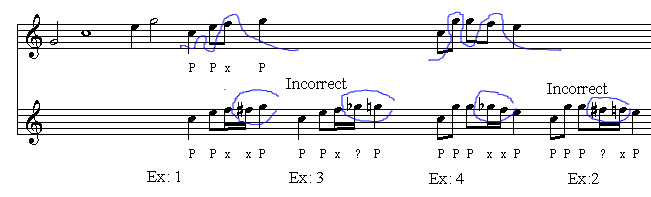 Dans ces exercices, les seules notes que l’on peut rajouter par rapport à la mélodie originale sont des notes de passages chromatiques. Elles doivent être placées entre des notes conjointes, distantes d’un ton. Si vous ajoutez des notes diatoniques comme ici (chromatisées ou non), vous obtenez une variation (qui sera d’ailleurs au programme du niveau II) mais ce n’est plus un exercice de chromatisme.
