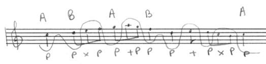 Il ne faut pas oublier l’analyse de chaque schème extrait. Elle peut différer en effet de celle de la même figure dans le cheminement. Ce premier schème n’est pas très intéressant car la tonique n’y figure pas.