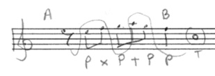 - N’oubliez pas d’entourer la tonique dans les schèmes et les imitations. Si elle n’est pas présente dans le schème initial, écrivez la en ronde et entre parenthèses dans la portée.
