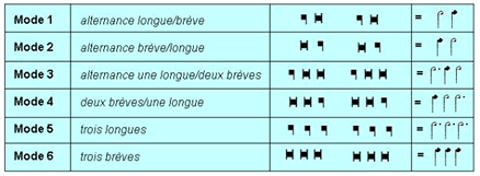 Ce nouveau système de notation permet de préciser les rythmes. On définit alors un système de 6 modes rythmiques, tous établis sur une base ternaire, selon la division des valeurs de notes alors en usage. Le rythme binaire n’apparaitra que plus tard, avec l’"Ars Nova", qui fera l’objet d’un prochain article.
