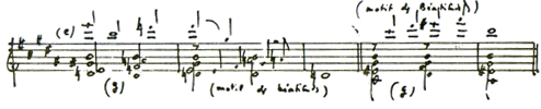 A ce cri répond un prodigieux moment musical, d’une inspiration débordante dans laquelle la sensibilité et la spiritualité sont intimement mêlées, et cela grâce à un simple motif (e) de trois notes nourries d’harmoniques aidées aux violons, se reposant sur une tendre ondulation (f).