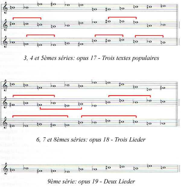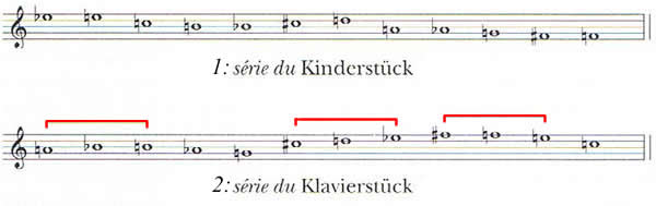 Pour autant jusqu’ici, « aucune de ces premières séries ne possède encore de propriétés de construction véritablement utiles au développement de l’écriture », constate le musicologue. Néanmoins, une première trouvaille est amorcée : « certaines montrent toutefois des relations d’identité qui les rendent en partie combinatoires. C’est le cas de celles du Klavierstück, des deuxième et des troisième mélodies de l’op.17, et de la deuxième de l’op.18 ». Webern tient là enfin un moyen nouveau qui lui permettra d’organiser dans ses œuvres un véritable développement, et d’atteindre une cohérence, concevant la série comme germe de l’œuvre, sa "Loi" dit-il.